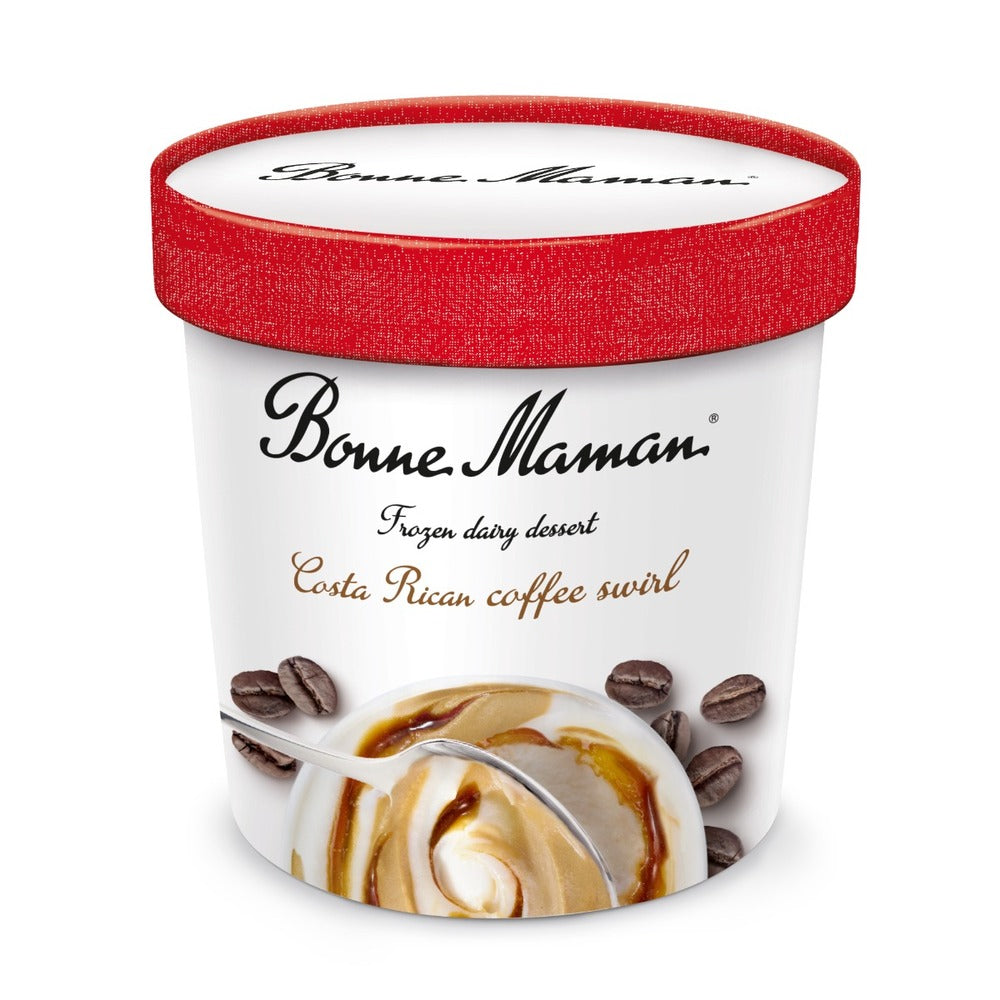 For its Costa Rican Coffee Swirl Frozen Dairy Dessert, Bonne Maman selected simple ingredients to create a creamy Frozen Dairy Dessert.